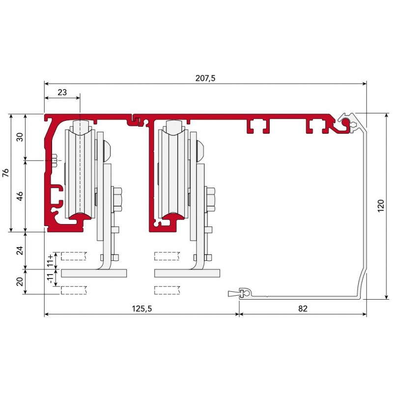 Patin de guidage pour vantail mobile télescopique (droite/gauche) pour profilé MYONE M30 et standard avec guide 01AL0011