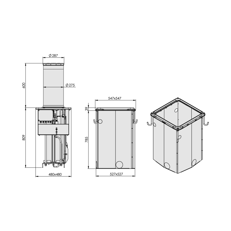 Coffre fondation norme EN124 (40T) pour borne escamotable RISE SPARTACUS 275 course 600mm, dimensions 547x547mm, profondeur 785mm