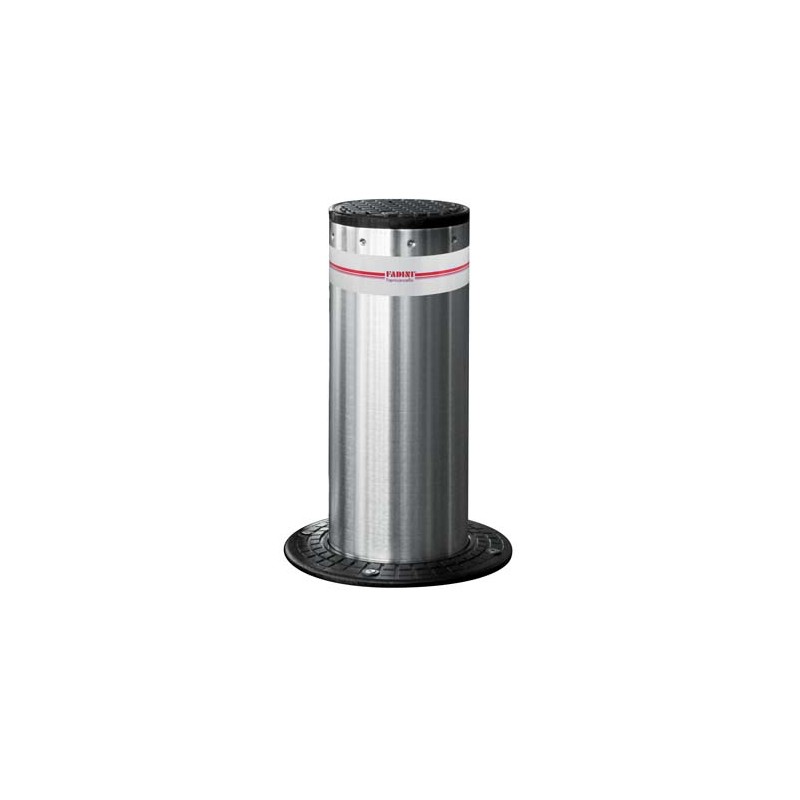 Borne escamotable SEMI-AUTOMATIQUE FADINI GASMA922, INOX AISI304 brossé, remontée par vérins à gaz, capot avec joint de protection, diamètre 275mm, course 700mm, épaisseur 4mm, livrée avec COFFRE SCELLEMENT H1030mm, résistance au CHOC 40000J, résistance à la RUPTURE (défoncement) 280000J.