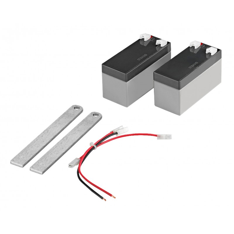 Agrandir l'image Kit SECOURS BATTERIES 24V composé de câbles, supports et 2 batteries 12V 1.2AH, permet d'assurer le fonctionnement en cas de panne de courant pour motoréducteur BENINCA JACK24 - Autonomie 2 heures suite absence alimentation pour 1 manoeuvre d'ouverture -