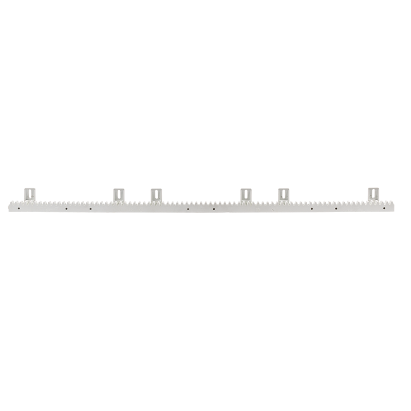 Crémaillère armée de FIBRE DE VERRE/NYLON, âme acier, dimensions 28x22mm, longueur L1000mm, modulo M4, 6 fixations, poids du portail maximum 800Kg, coloris BLANC