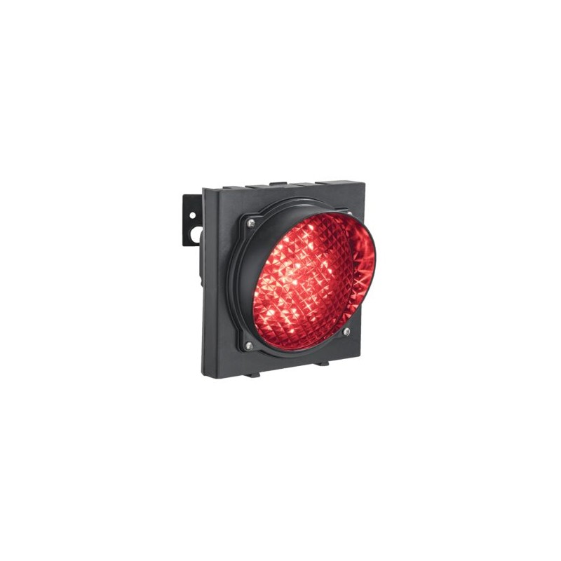 Feu de signalisation modulaire UNICOLORE à 18 LED, lentille avec visière diamètre 120mm couleur ROUGE, luminosité 35 Lux, alimentation 24Vac/dc - consommation 1.5W, corp en technopolymère orientable 130°, montage en APPLIQUE, dimensions hors tout: profonfeur 135mm, hauteur 160mm, façade 160x160mm, indice de protection IP65
