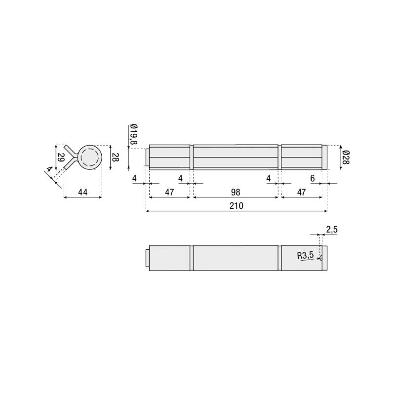 Charnière à axe extractible et rondelles HIMOTIONS 580.10, diamètre total 28mm, diamètre axe 19.8mm, hauteur totale 210mm, portée maximale 250Kg (paire)