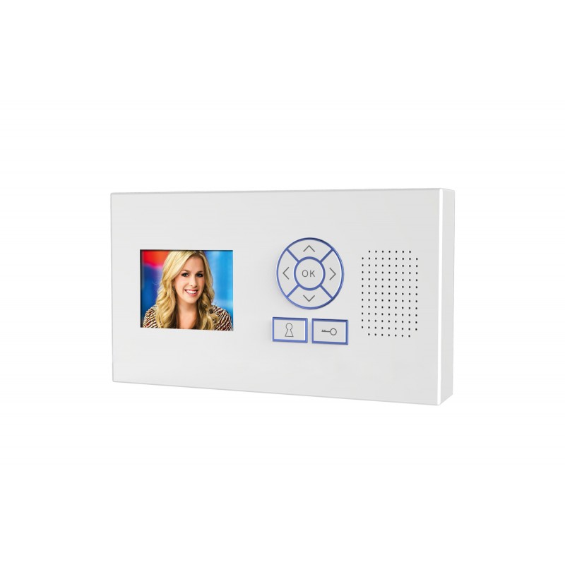 Combiné VIDEO mural "MAINS LIBRES", écran LCD couleur 3,5", 7 touches, fourni avec kit de montage, montage en SAILLIE, dimensions 162x92x31mm, pour interphone vidéo AES GLOBAL série 605 et 705