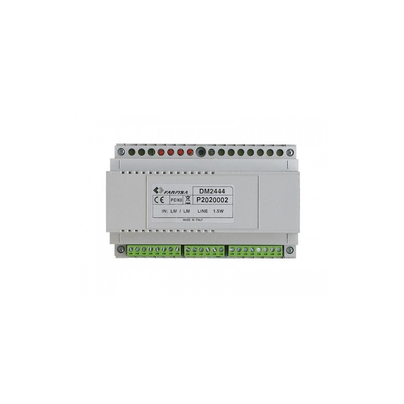 Agrandir l'image Distributeur 4 lignes vidéo entre 4 platines de rue et postes intérieurs pour système ACIFARFISA DUO, 4 entrées vers 4 sorties, montage sur rail DIN (8 modules), dimensions du boitier 140x89x74mm