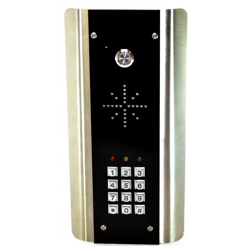 Agrandir l'image Platine de rue ANTI-VANDALE seule AESGLOBAL modèle ARCHITECTURAL rétro-éclairée à 1 bouton d'appel et façade INOX BS316 brossé et acrylique coloris noir, dimensions 144x192x40mm, montage en SAILLIE, indice de protection IP55