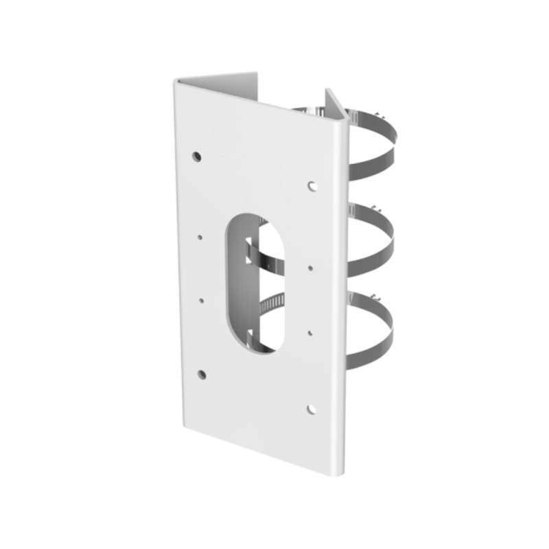 Agrandir l'image Support poteau pour camméra de lecture de plaque d'immatriculation ANPR 28.12, dimensions plaque 127×46×250mm, collier de serrage en INOX, diamètre de serrage de 100 à 127mm