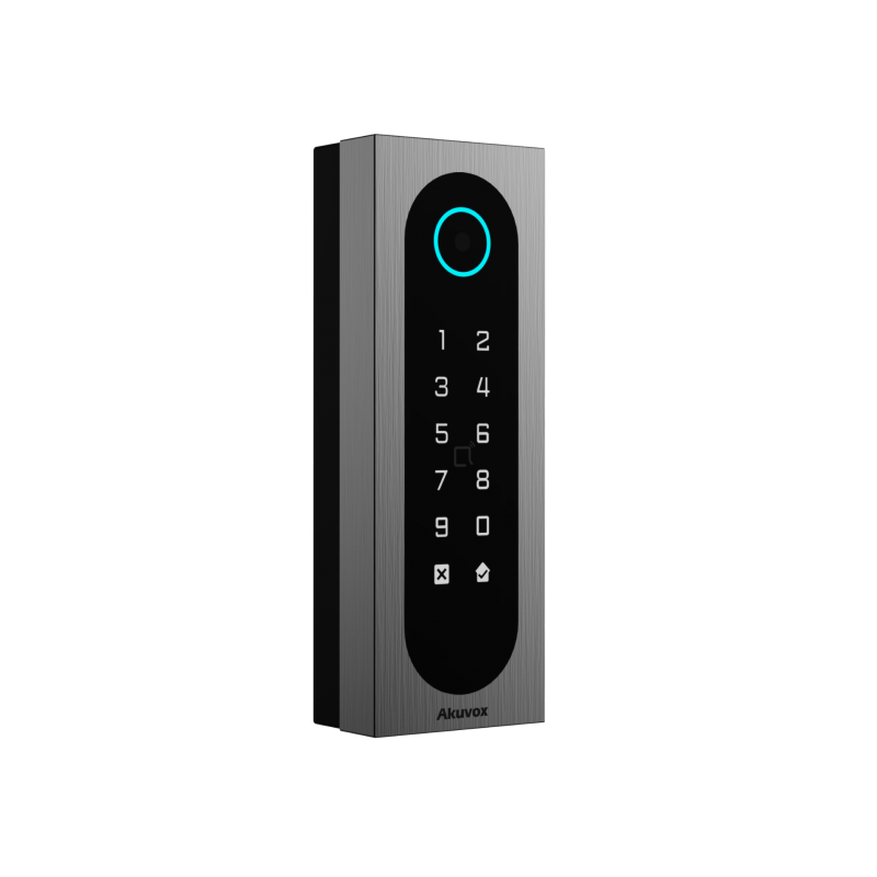 Lecteur de proximité AKUVOX A08S, déverrouillage via lecteur de proximité RFID 125KHz et 13.56MHz, scanner QR CODES, digicode 12 touches tactiles rétro-éclairées, connexion BLUETOOTH 5.0 ou smartphone via NFC, 2 entrées, 1 sortie relais, connexions WIEGAND, RS485 et ethernet RJ45 10/100 Mbps adaptatif, alimentation POE ou 12Vdc/600mA (non fournie), boitier antivandale en ZAMAK et verre trempé indices de protection IK09, IP65, montage en APPLIQUE dimensions 50 x 140 x 26.7 mm