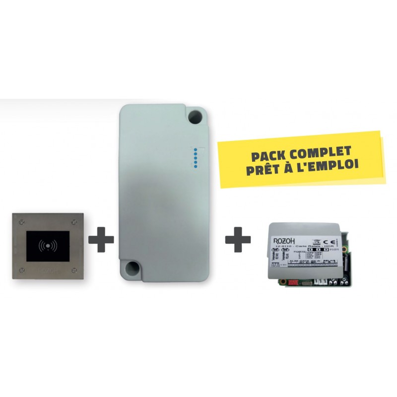 Agrandir l'image ROZOH BOX Contrôle d'accès LECTEUR "MAIN LIBRES"comprenant un lecteur de badges "MAINS LIBRES" (R301-0001), ANTIVANDALE - Finition INOX - Pose en ENCASTREMENT (boitier pour pose en saillie R801-0001, non fournie) - Dimensions 130x130x2.5mm, dimensions d'encastrement 112.4x112.4x40mm - Indice de protection IP54 + une carte relais (R103-0001) + une centrale de gestion CA (R101-0006), gestion jusqu'à 1000 utilisteurs, 500 codes, fonction HORLOGE 5 plages horaires/365 jours incluant jours fériés et vacances scolaires, dimensions 90x183x72.5mm, alimentation 24Vdc/2.5A - inclus Data illimitée pend