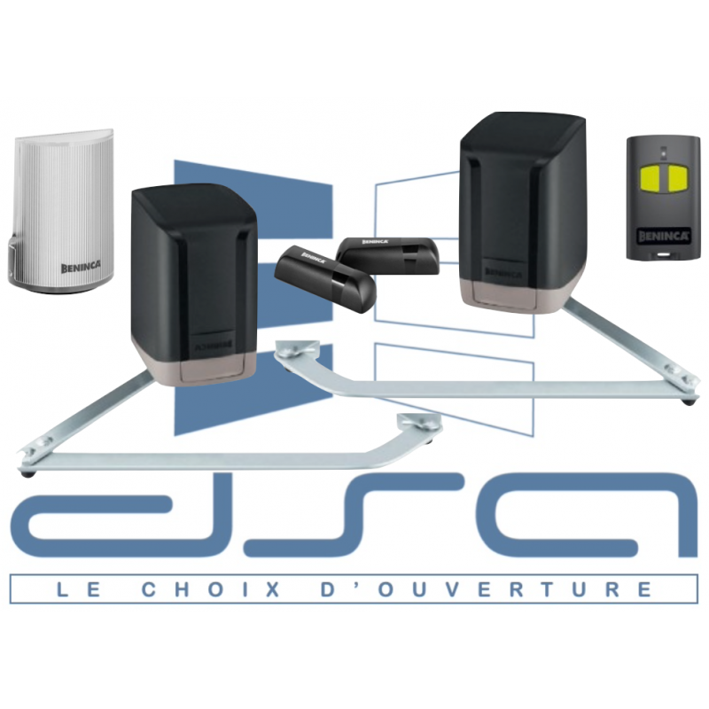 Agrandir l'image Kit d'automatisme à motoréducteurs 24Vdc à BRAS ARTICULES pour portail double battants pivotants BENINCA SAM PLUS, longueur maximale de passage L6000mm, poids maximum de chaque vantail 350Kg, livré avec 1 motoréducteur 24Vdc SAM.24 PLUS, 1 motoréducteur 24Vdc SAM.E24 PLUS avec centrale de gestion CP.SAM intégrée (détection d'obstacle, AUTO-APPRENTISSAGE, ralentissements, entrées cellules, ouvre, ferme, PP et PED, entrées encodeurs, sortie électroserrure, ENCODEUR intégré, système STC et butée mécanique réglable en ouverture (en option pour la fermeture), fonction ESA + GREEN SYSTEM économie d