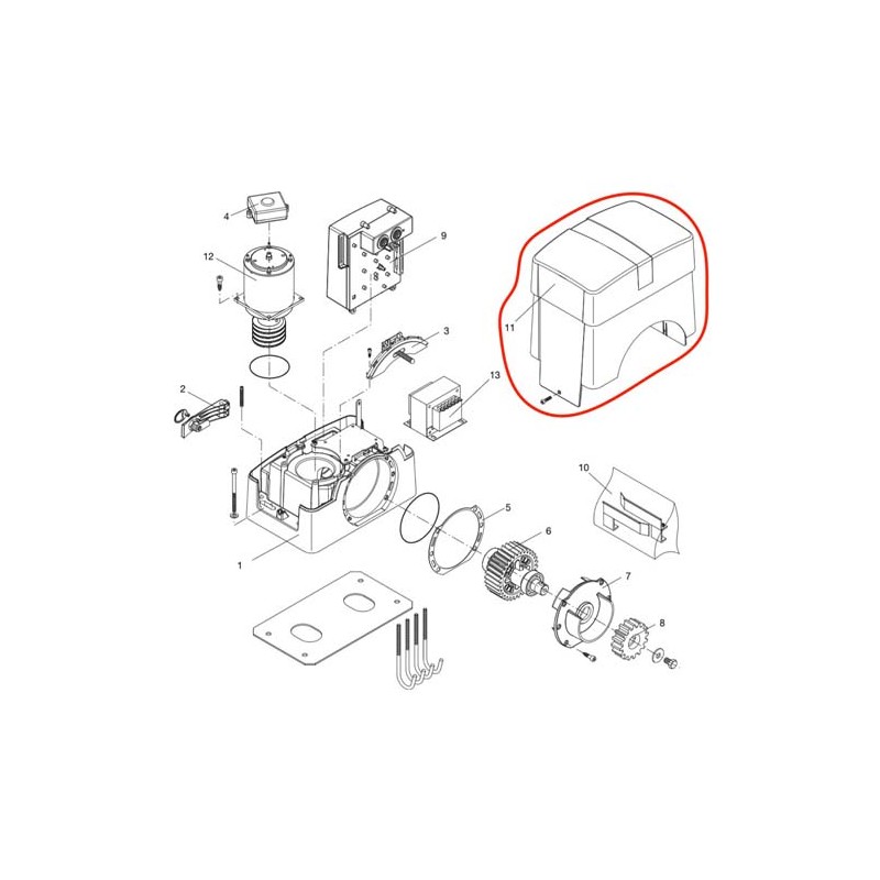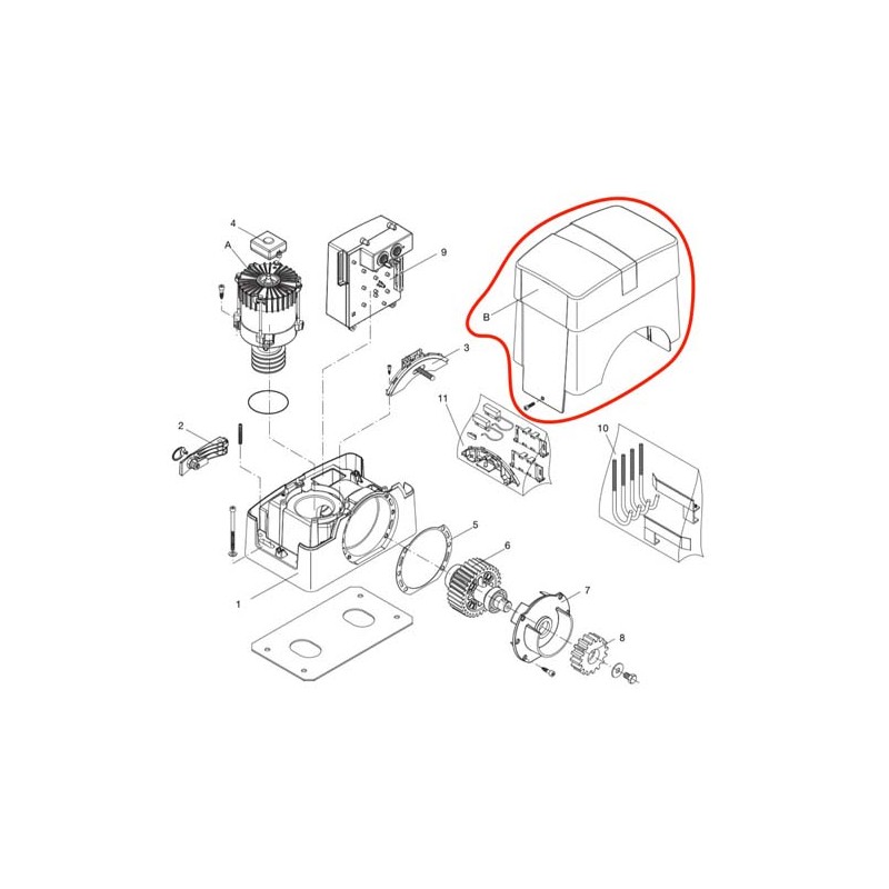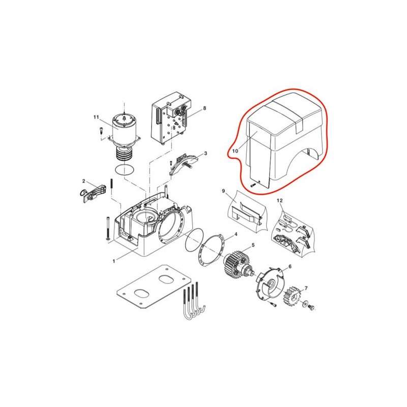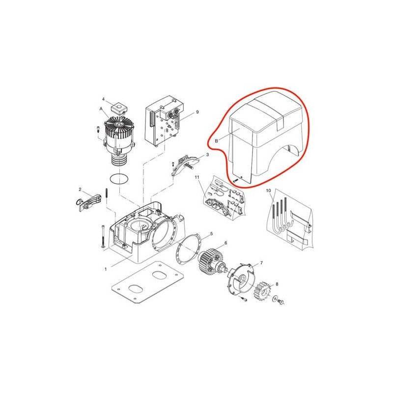 Capot en ABS, modèle BAS profil (hauteur totale motoréducteur H340mm) pour motoréducteur BENINCA série BULL10M, BULL15M, et BULL1524 (ancienne génération avec centrale de gestion sur face avant)