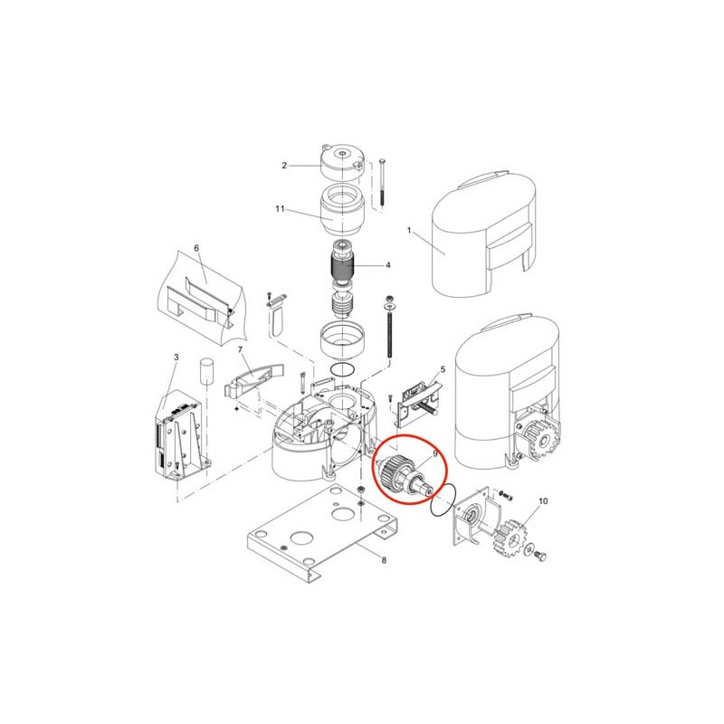 Arbre de sortie avec roulement et couronne pour motoréducteur BENINCA MS4