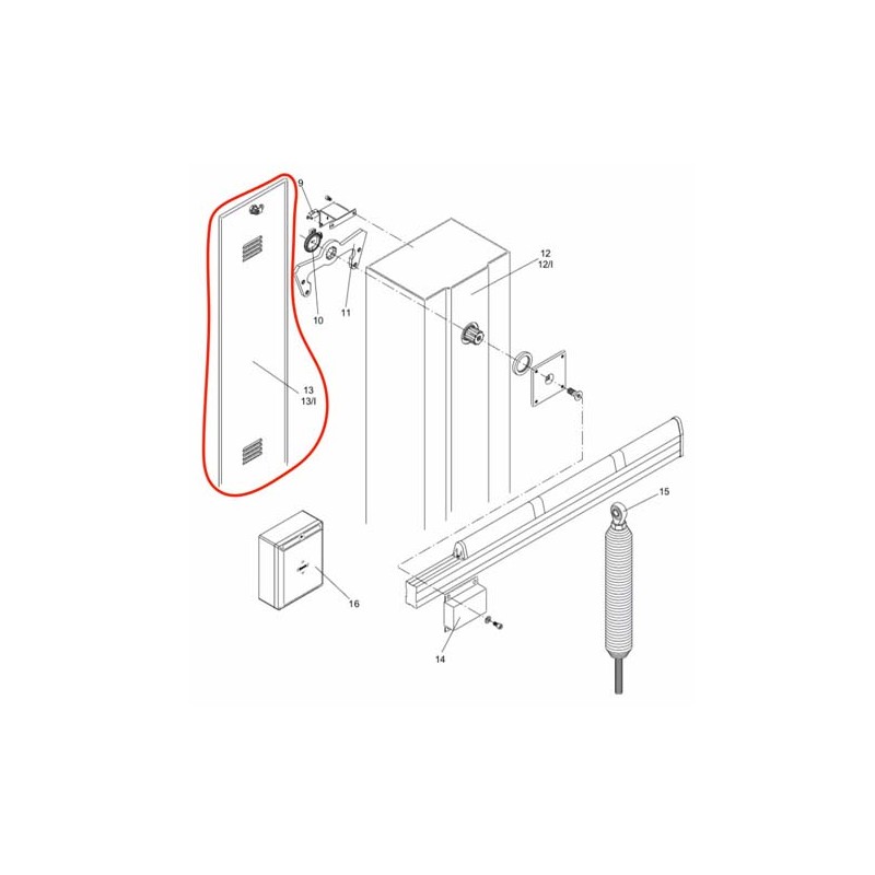 Porte en acier RAL2009 coloris orange avec serrure pour barrière BENINCA VE.500