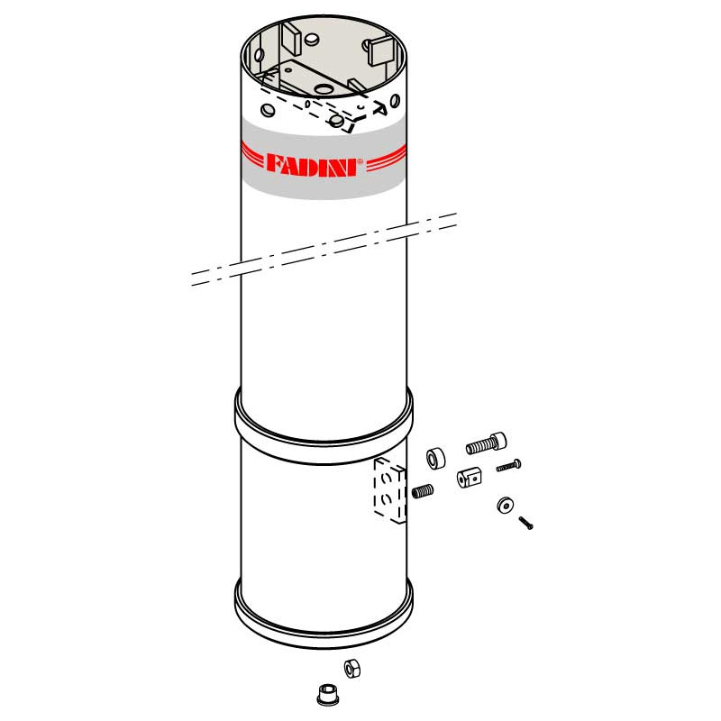 Colonne diamètre 200mm, course 800mm, longueur 1050mm, coloris RAL7016 gris anthracite, fournie avec l'adhésif réfléchissant, pré-disposition pour LED (8 trous) pour bornes FADINI VIGILO 2280 et 2281 - Comprend les pièces REPERES 27-48-73-74-76-86-87-89-120-126-127 - **** Remplace l'article 22883 ****