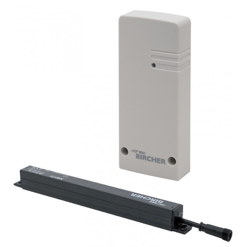 Agrandir l'image Ensemble pont radio BIRCHER XRF-I, INTEGRABLE dans barre palpeuse résistive 8.2Kohm ExpertSystem XL , composé d'un émetteur intégrable XRF-TI - fréquence 868MHz (portée maximale 100m*), auto-alimenté par 1 pile lithium 3.6V, boîtier IP65, dimensions 194x18x18mm - et d'un récepteur XRF-R.1 - monocanal, 1 sortie relais, jusqu'à 14 émetteurs, temps de réponse 15ms, indicateur sonore contrôle niveau batteries émetteur, alimentation 12/36Vac-dc 0.6W, boîtier en ABS indice de protection IP65, dimensions 121x50x23mm -