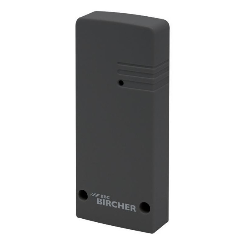 Emetteur pont radio 868MHz BIRCHER XRF-T.2 BK, coloris ANTHRACITE, alimentation par pile lithium 3V (CR2450N), portée théorique 100m max., dimensions 50x121x23mm, indice de protection IP65, homologations EN ISO 13849-1, EN 300 220, EN 300489
