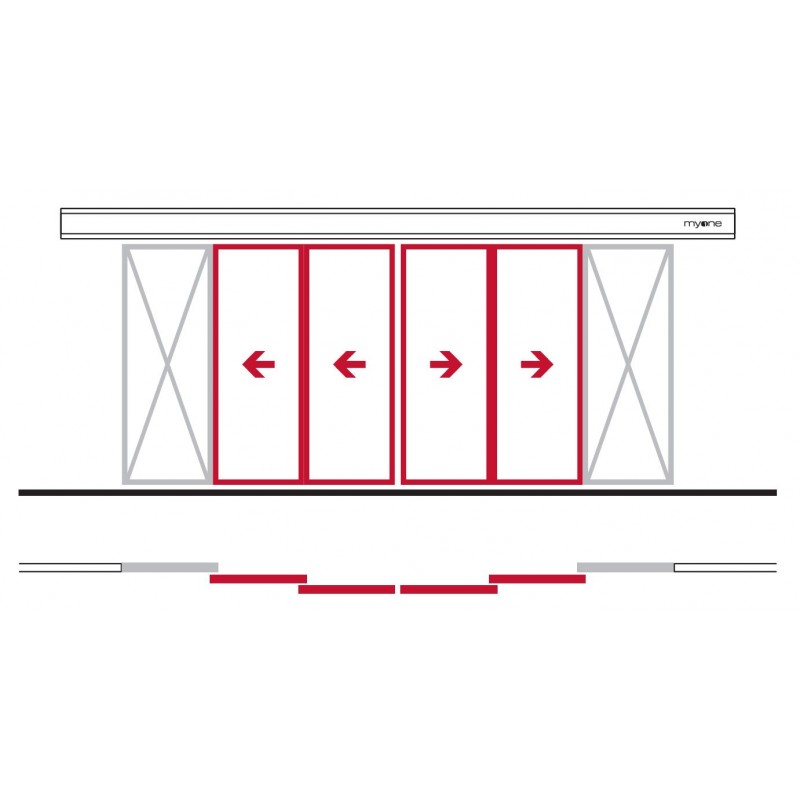 Agrandir l'image Kit de composants pour la conception de 4 vantaux coulissants TELESCOPIQUES en APPLIQUE avec 2 VANTAUX LATERAUX FIXES, comprend les profilés MYONE M30 en aluminium anodisé avec joints, brosses, brides et visserie, dimensions maximale de l'ouverture murale L4000mm, H3020mm - PRECISER L'EPAISSEUR DU VITRAGE 10 ou 22mm - *** VITRAGE NON FOURNI ***