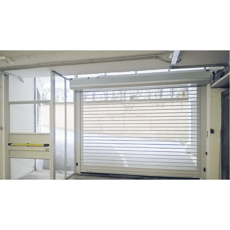 Rideau métallique enroulable à USAGE INTENSIF - BALLAN TENAK Tablier à lames PLEINES galvanisées, thermolaquées ,coloris RAL au CHOIX, pas de 100mm, épaisseur 0.62mm Aérations par lames microperforées R4 (1/4 partie haute, 1/4 partie basse du tablier) Résistance au vent classe 2 Motorisation 230V monophasé, moteur triphasé avec INVERTER usage intensif Lampes de signalisation INT/EXT et cellules INTEGREES Palpeur OPTIQUE en partie basse du tablier Certificat de CONFORMITE EN13241.1 Coulisses et coffre enroulement coloris identique au tablier Coffre hauteur 350mm, profondeur 520mm C