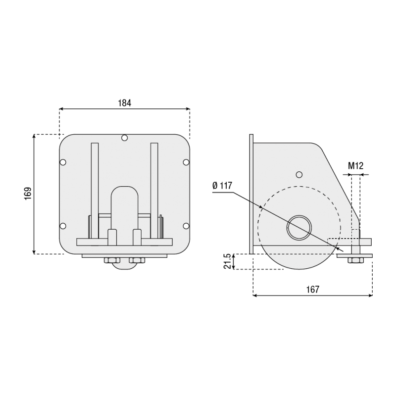 Roue de guidage à insérer dans le monorail de guidage HIMOTIONS SERIE XXL, longueur A167mm, largeur L184mm, hauteur H190.5mm, diamètre de la roue D117mm
