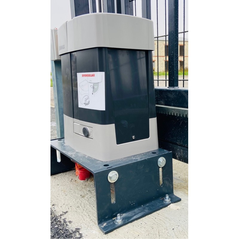 Chaise/réhausse pour motoréducteur pour portail coulissant, réglage en hauteur de 60 à 140mm, dimensions 410x250x60/140mm, en acier épaisseur 6mm, thermolaqué RAL7004 (gris signal clair)