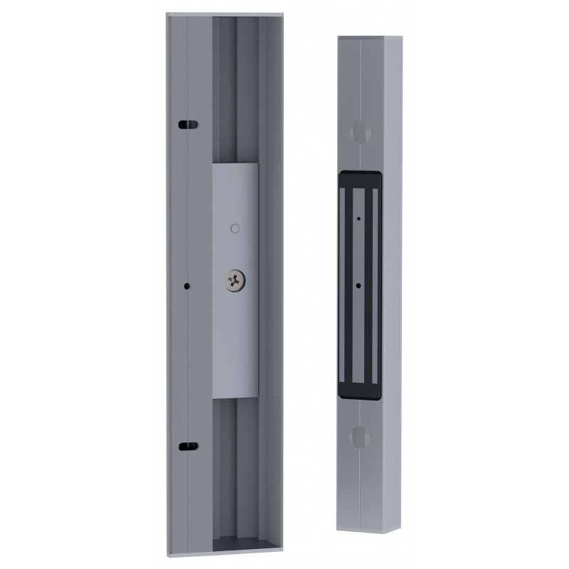 Bandeau poignée aluminium SEWOSY CPREG2N avec 1 ventouse force de rétention 300 daN, longueur 400 mm, finition SATINE, dimensions (L x l x P) : 400 x 90.4 x 70.35 mm, largeur bandeau ventouse 43.10mm, indice de protection IP42, alimentation 12/24VDC, consommation 480/260mA (6.5W), contact d'état NO/NF max 30Vsc/0.2A, bouchon en ABS coloris gris alu, certifié NF S 61-937 (24V)