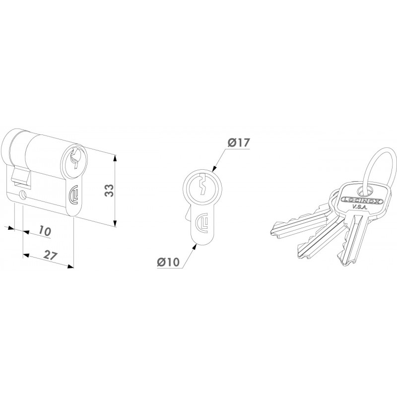 Demi cylindre 37mm 10 - 27mm, s'entrouvant Z, fourni avec 3 clés, à utiliser avec les verrous LOCINOX ELECTRADROP, KEYDROP et KEYSAFE
