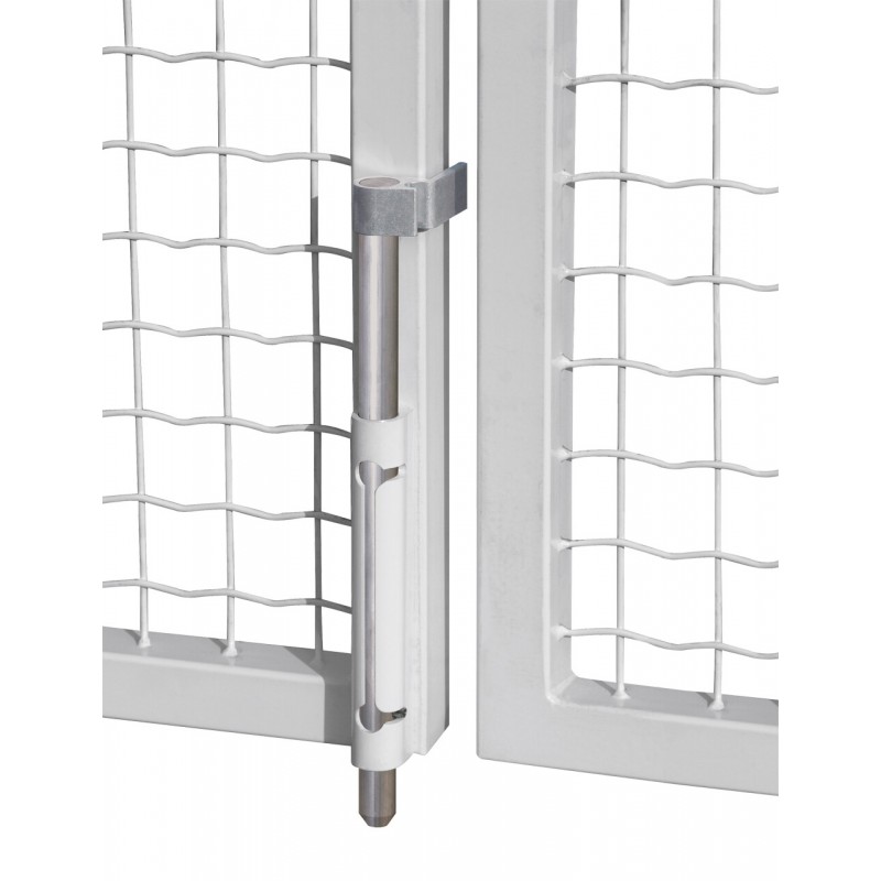 Verrou en sol en acier galvanisé à chaud LOCINOX VSF, sans laquage, poigné et coffre en aluminium, pour profil carré de 400mm et plus, réglage en hauteur de la sortie de tige: 100mm, course max 140mm, fixation QUICK-FIX, hauteur de la tige 490mm